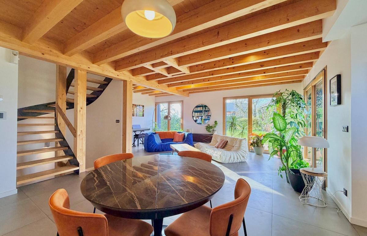 Villa de 240 m² nichée sur plus de 3000 m² en zone naturelle protégée, avec vue à couper le souffle sur rivière et forêt. À proximité de Genève et des stations de ski, notre villa offre un équilibre parfait entre nature et accès aux activités urbaines et de montagne. Détendez-vous dans le jacuzzi pendant que les enfants jouent dans la rivière, notre « piscine » naturel, ou observez la faune environnante. Profitez également d’une salle de jeux équipée pour des moments de partage inoubliable.
