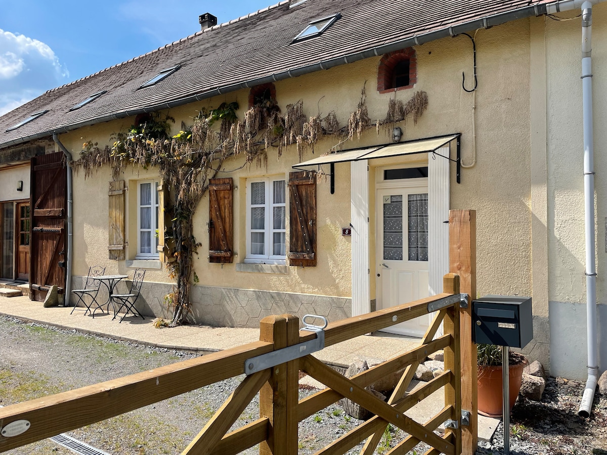 Dans une petite ferme à proximité des propriétaires vous disposez d'une maison individuelle comprenant 2 chambres avec lits de 140 + 1 lit de 90 dans la chambre 2. Salle à manger, salon avec télévision cheminée et canapé convertible pouvant accueillir 1 ou 2 personnes supplémentaire, une cuisine équipée et une salle de bain avec baignoire . à l'extérieur, table, barbecue, balançoire,. Dans la propriété vous trouverez des montons et des ânes. de ce fait les chiens ne sont pas admis.