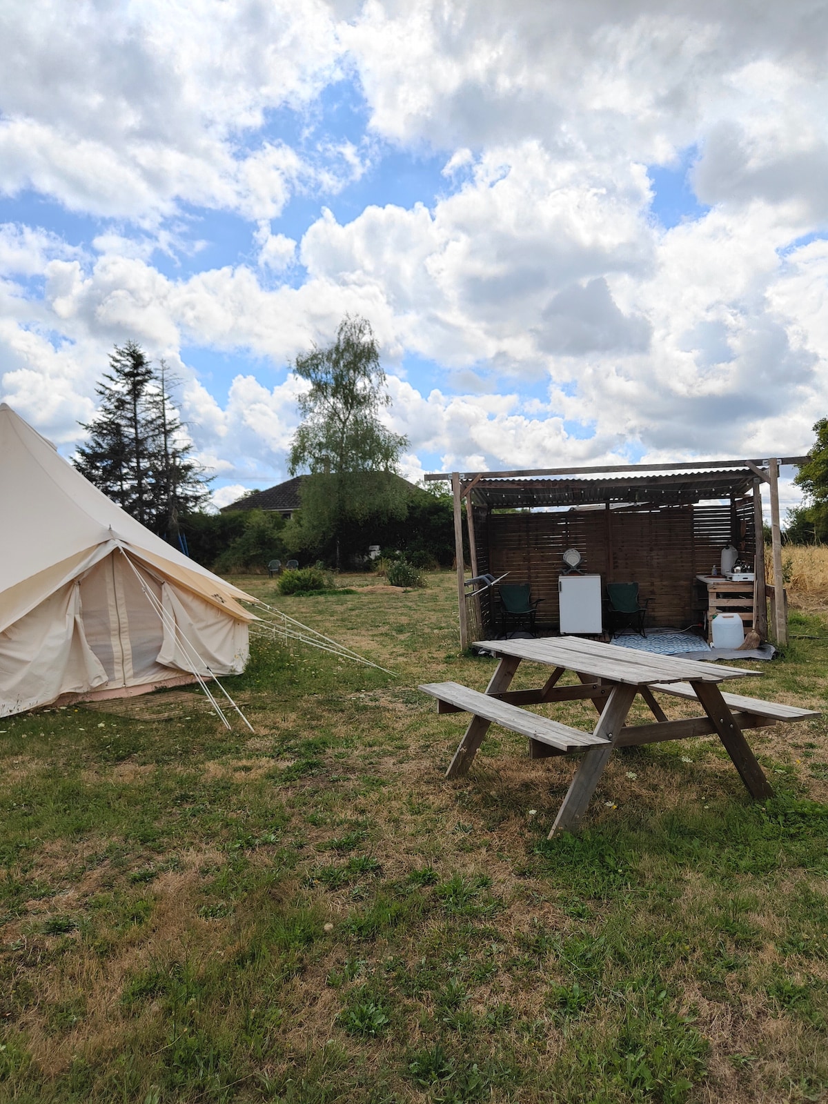 Envie de vacances simples et sans tracas ? Notre tente aménagée vous attend, prête à l’emploi, sur notre petit camping familial. Vous y trouverez un lit confortable déjà fait, un coin cuisine équipé, de la vaisselle, de l’éclairage, une table pour manger et l’électricité. Posez vos valises, respirez, et profitez. Les sanitaires communs sont propres et bien entretenus. En couple ou en famille, c’est l’endroit idéal pour se reconnecter à l’essentiel — et à la nature.