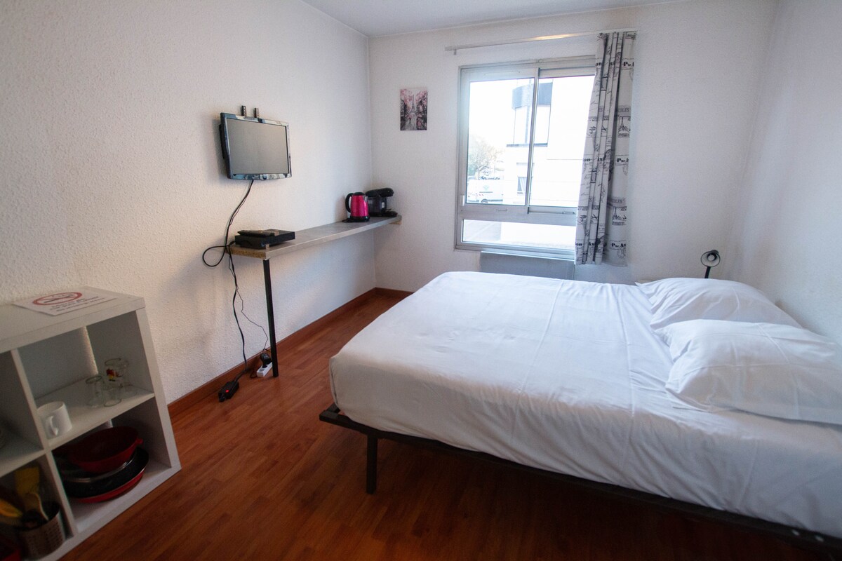 Studio indépendant et élégant de 48 m² dans une maison individuelle, pouvant accueillir 2 personnes. Il est équipé d'une kitchenette, d'une chambre, d'un espace bureau, d'un coin salon avec télévision et d'une salle de bain et WC séparés (lit bébé et chauffeuse sur demande). Un espace détente à découvrir ;) Serviettes de toilette et linge de lit compris dans le prix. Le logement dispose également d'une cour pour stationner et d'un jardin privé (table de jardin, table de ping-pong).