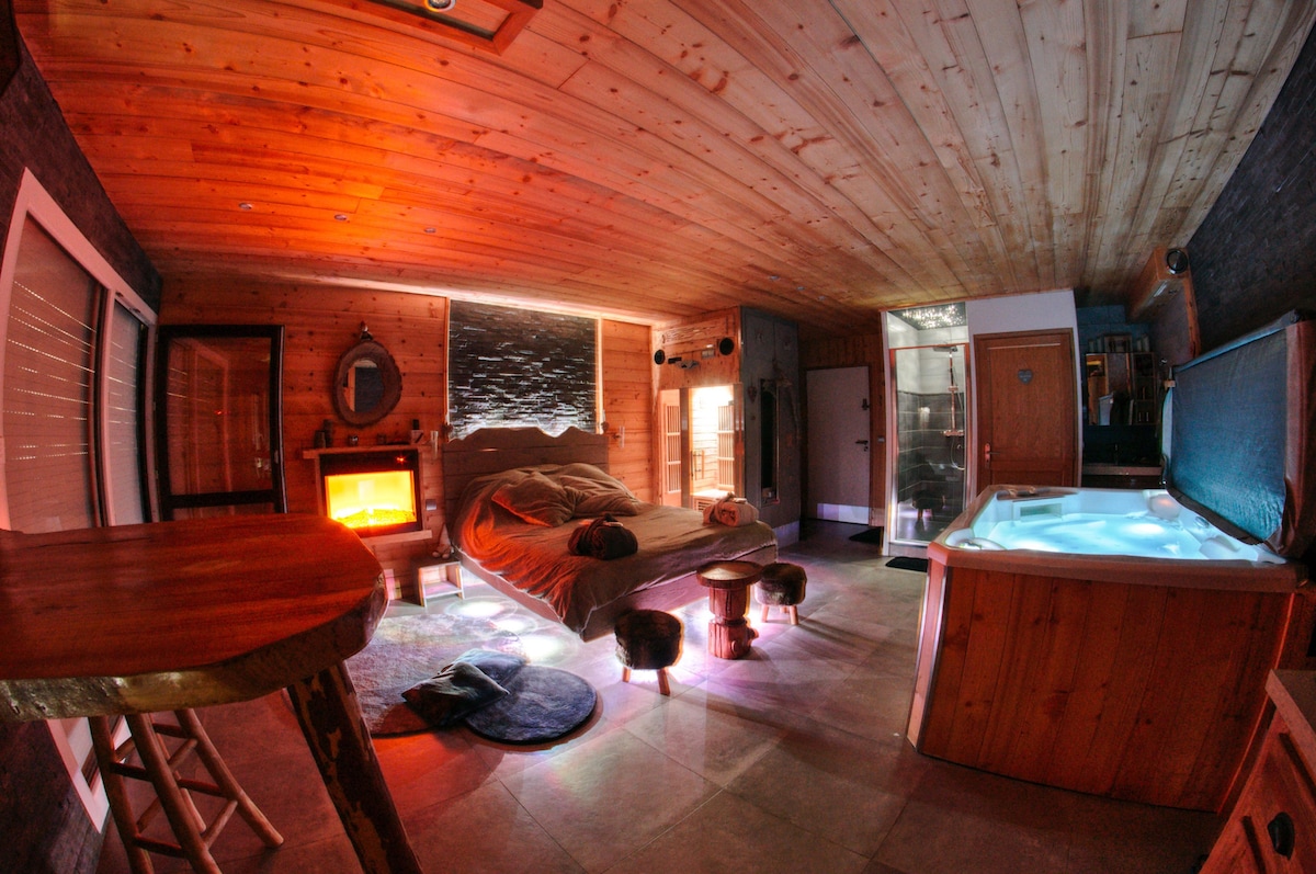 Chalet insolite sur pilotis avec spa privatif sur la terrasse (accessible toute l'année) au coeur d'un domaine en pleine nature, au milieu des pins. Au bord du lac de Serre-Poncon, à 30 min de la station de ski de Réallon et 45 min de la station des Orres. Salle de bain avec grande douche à l'italienne, wc séparés. Poêle à granules pour réchauffer vos soirées d'hiver. Petit déjeuner compris. Lit fait à l'arrivée, peignoir et serviettes fournis.