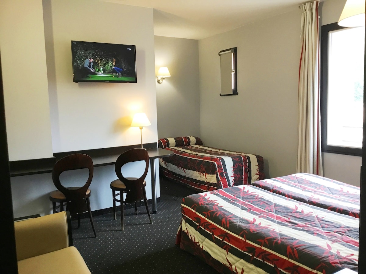 - Official website of hotel Roissy - Best rate guaranteed. - No booking fee - The nearest hotel from Lourdes Grotto entrance. - New high quality bedding - Free Wifi in all around the hotel - Car park 1 double bedded room 18m2 High quality double bed in 2 meters long Air conditionning Free wifi access Electronical lock Bathroom with shower and WC Hairdryer Soundproof window and door Flat screen TV Satellite TV 40 international channels Direct phone Desk Individual wardrobe Heating Extra pillows Luggage rack Non smoking room Balcony on request