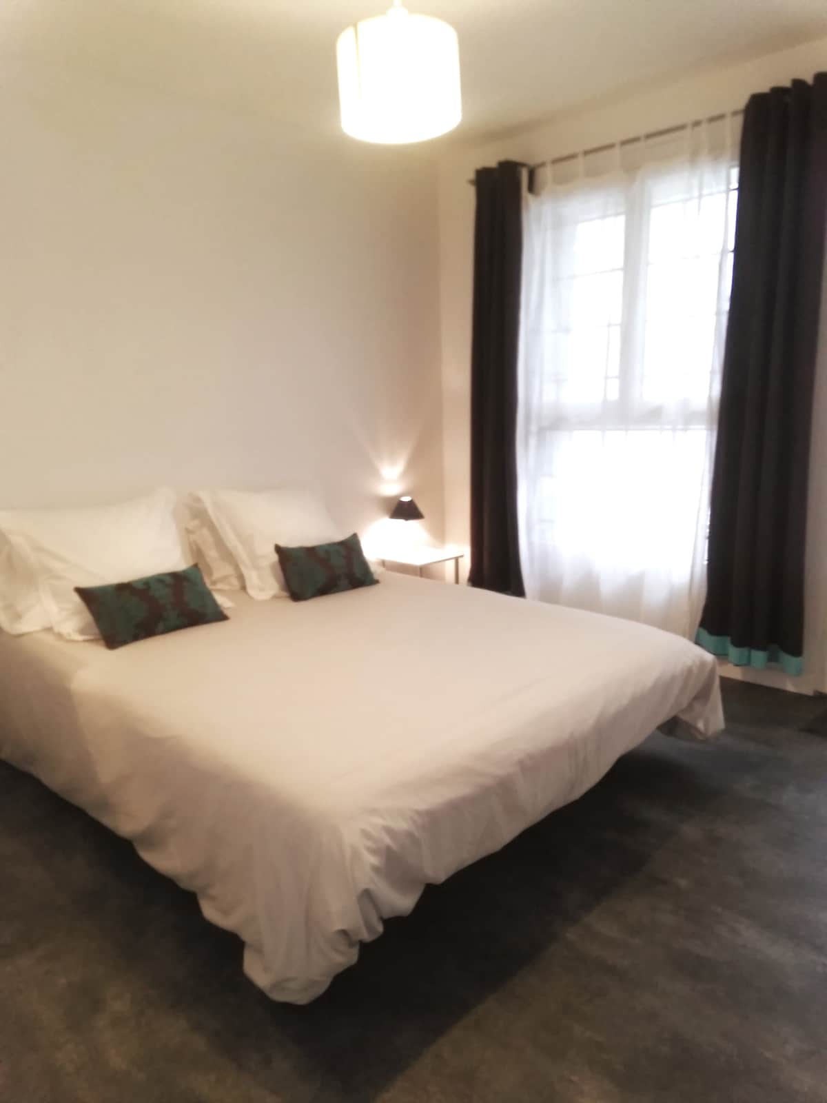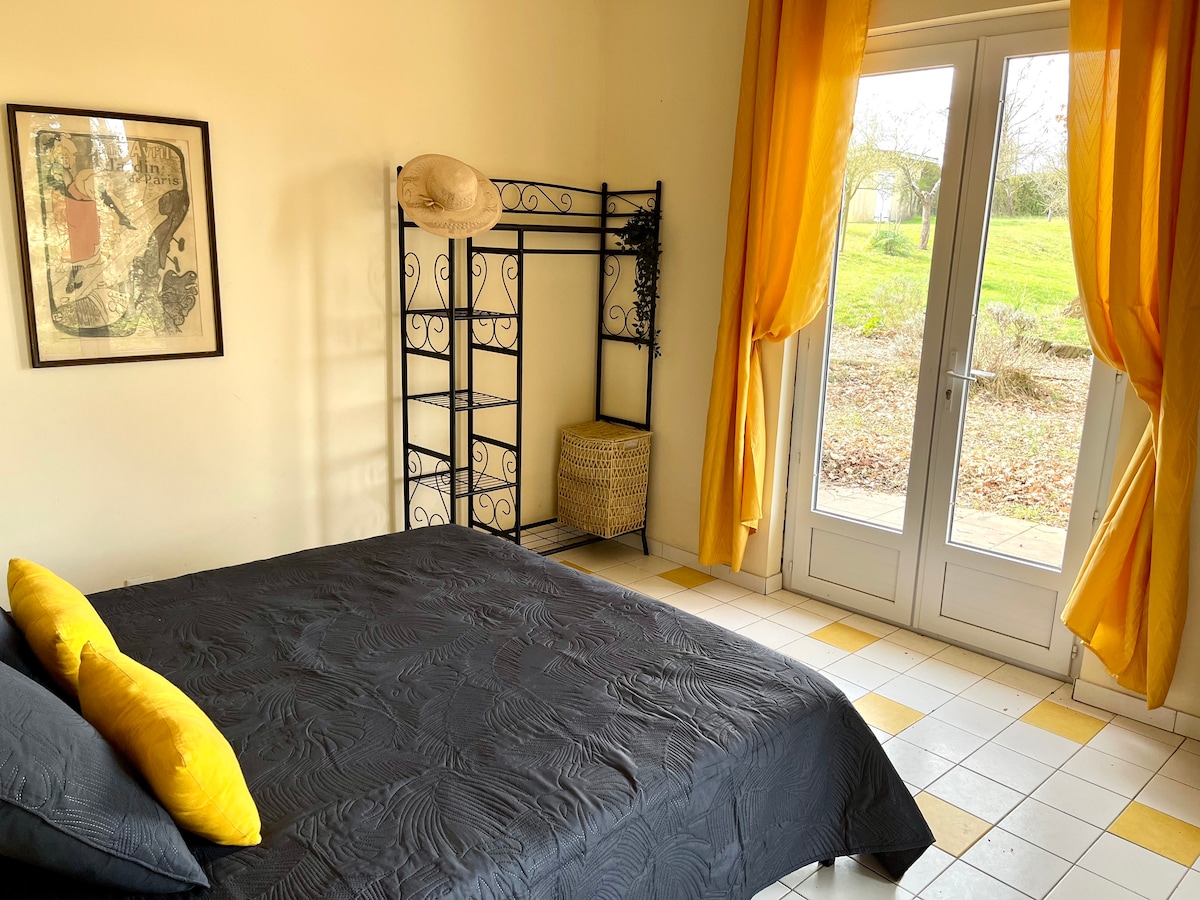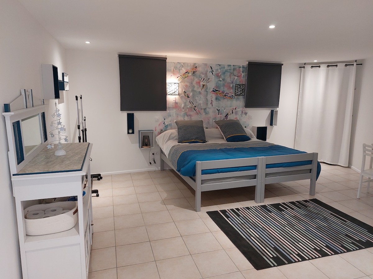 Studio de 38m2 mitoyen à la résidence principale. Vous disposerez d'un parking, d'une entrée indépendante, d'une cuisine entièrement équipée ( dont four, micro-ondes et lave-vaisselle), un espace nuit avec deux lits de 90X200 (confort Bultex) et d'une grande salle de bain (avec double vasque et machine à laver). Vous pourrez également profiter d'un bel extérieur, avec salon de jardin et barbecue, au calme, le logement se trouvant au fond d'une impasse.
