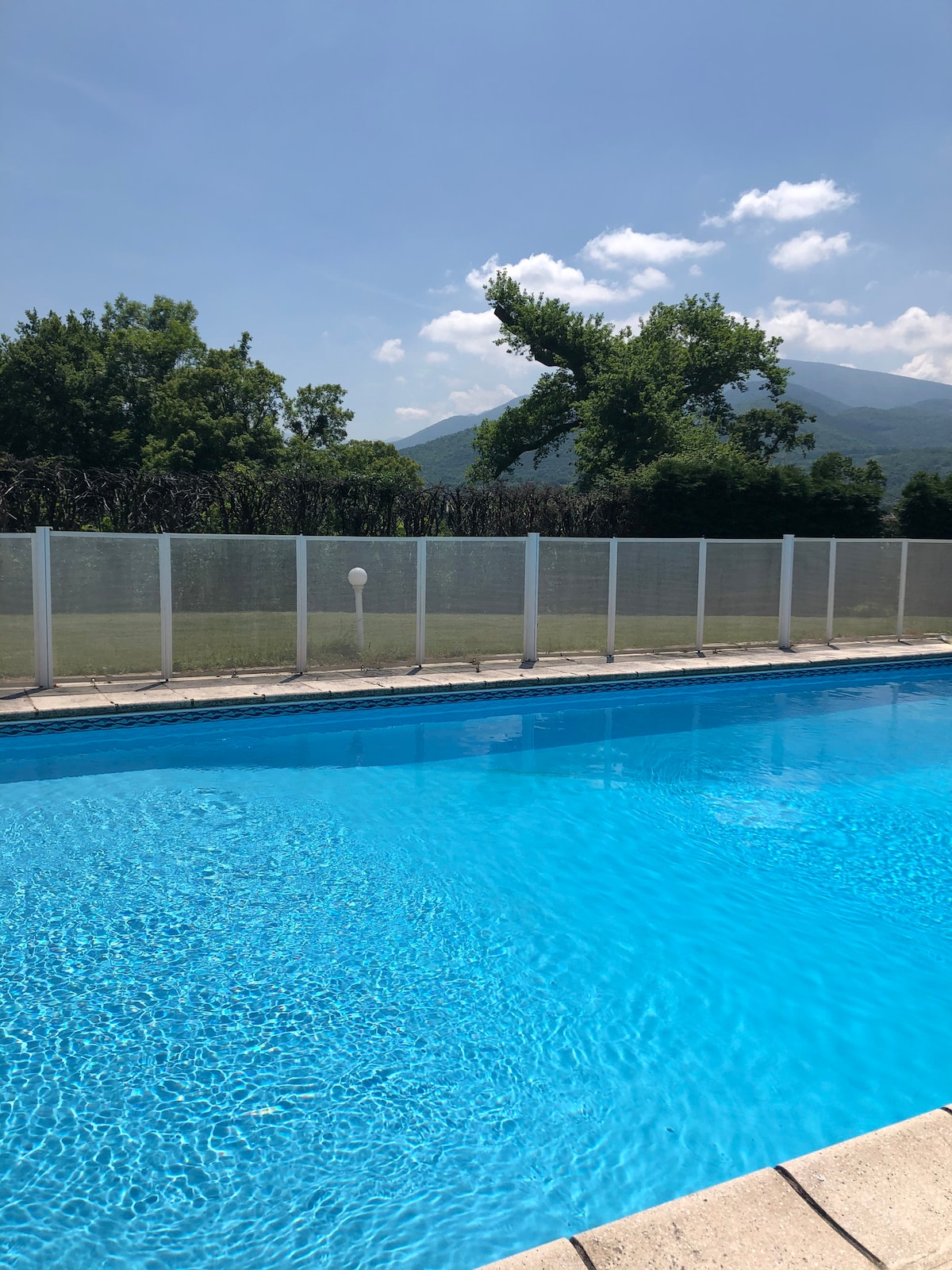 Welcome to our restored traditional farmhouse, with views of the Pyrenees. This colourful home blends rustic charm with vibrant character, offering a warm retreat in the countryside. Wander down to the bottom of the garden and discover a vintage American school bus. This well traveled bus has journeyed across Canada and the United States. Next to the bus, you'll find a charming bar - perfect for sipping wine at sunset, and an outdoor shower letting you soak in nature in true laid back style.