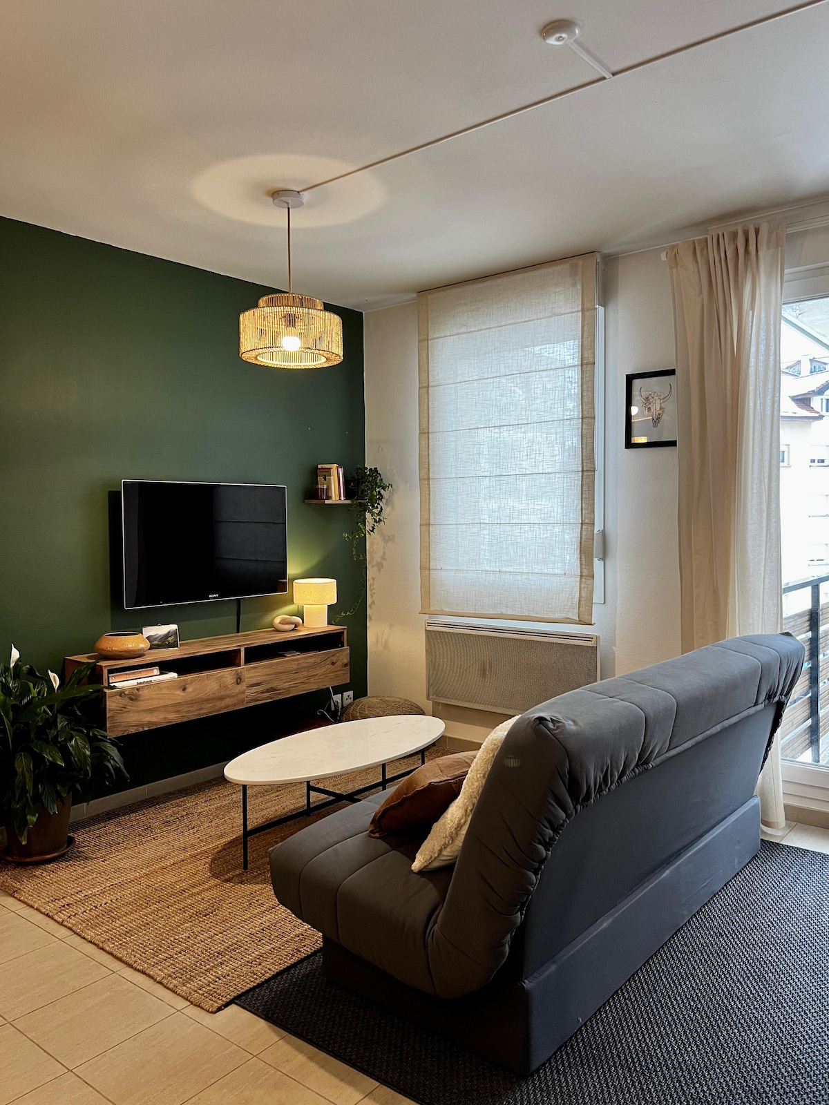 Bienvenue dans notre charmant appartement ! Profitez d'une expérience unique avec notre chambre élégante et son dressing, une salle de bain moderne avec douche à l'italienne, des WC séparés, une cuisine spacieuse entièrement équipée, et un salon cosy pour vous détendre. Idéal pour des séjours prolongés, notre espace vous offre le confort et la commodité dont vous avez besoin. Réservez dès maintenant et faites de votre séjour une escapade mémorable !