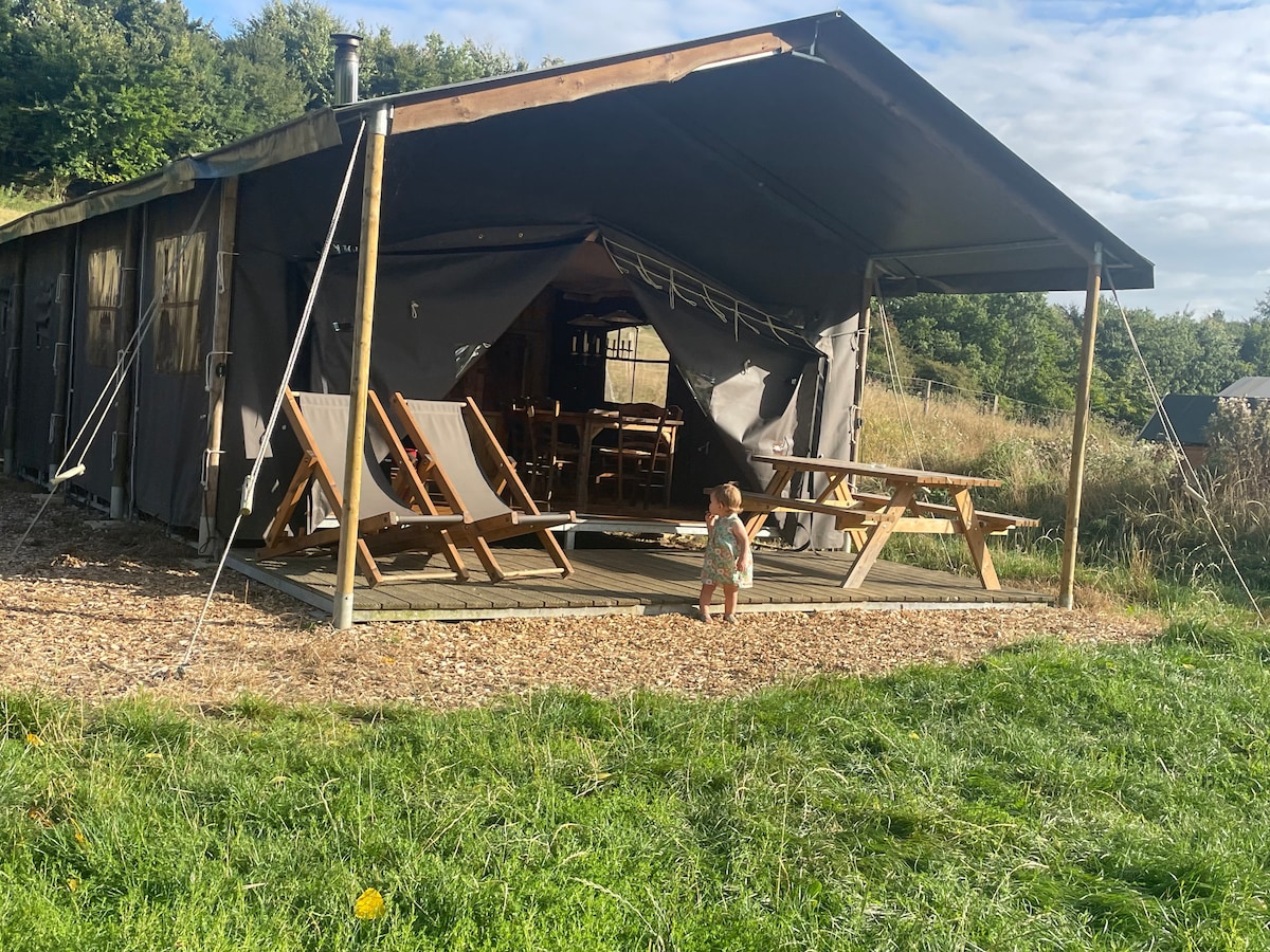 Venez découvrir un endroit unique et paisible, où la nature vous entoure de toutes parts. Notre Tente est un hébergement original et confortable, idéal pour des vacances en harmonie avec la nature. Profitez du silence et de la beauté de la forêt, pour vous ressourcer et vous évader du monde moderne. Admirez le ciel étoilé et le son des animaux nocturne, un spectacle époustouflant. Au début de l'automne, vous pourrez également entendre le brame du cerf, un moment magique et sauvage.