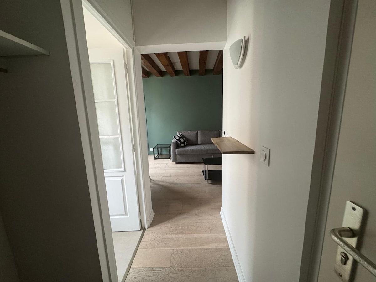 Authentic Paris at its most bohemian chic! This bijoux duplex apartment on the Left Bank in the heart of St. Germain is situated in a historic 17th century building just opposite the Musee Mailol and Fontaine des Quatre Saisons. The flat has been recently and totally renovated. The rustic stone walls and antique ceiling beams have been exposed and carefully restored on both levels. Modern design elements and understated hip luxury integrate with the buildings original features to make this flat the perfect city escape for the discerning traveler. The spacious and quiet bedroom on the 2nd floor features a French-made luxuriously comfortable king size bed (180cm) complete with the finest feather and hypoallergenic (upon request) bedding, built in closet, oak chest of drawers and a full length floor mirror. The ultra contemporary ensuite bathroom is decorated in calming hues of gray and beige, has a rain shower, toilet, sink and a towel heater. On the first level a fully equipped kitchen/ living and dining area have been tastefully outfitted with a mixture of modern classics and unusual finds, offering the utmost in comfort in a cool and casual setting designed to make your stay in the City of Lights a very special one.