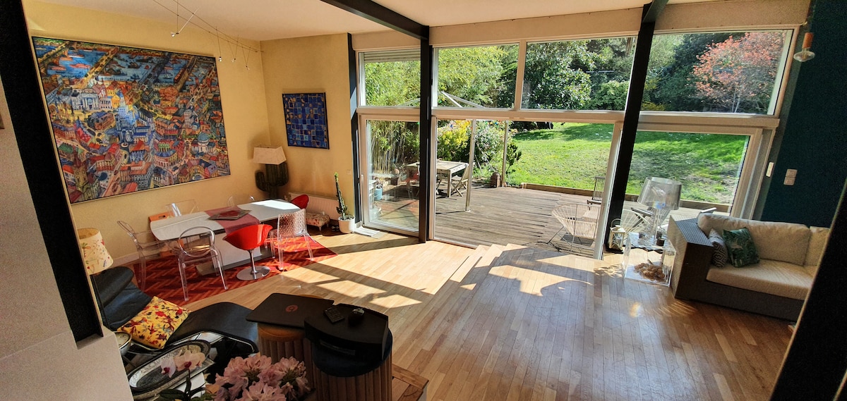 Single-storey studio, 24 m2, with a double bed or two single beds, overlooking the Seine, with a breathtaking view of Paris, located on the heights of Meudon Bellevue, in a private driveway, with a 900 m² garden. Close to shops, restaurants and transport (Métro 9 - Tram T2 -Commuter train line N - Bus), 25 min from the Eiffel Tower, Montparnasse train station 12 min, Versailles 12 min. Bike path to Paris. Ideal for working (high-speed Wi-Fi) or relaxing!