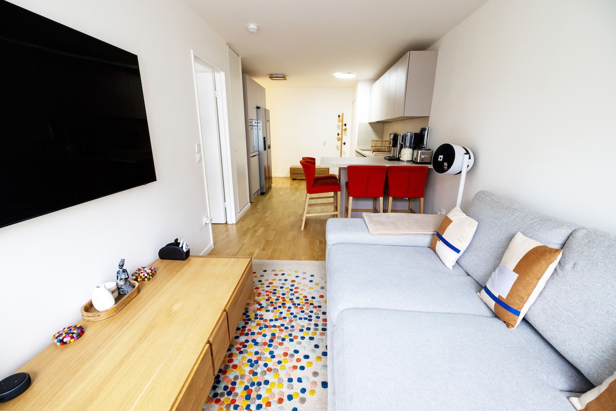 Charmant appartement de 38 m2 dans une résidence de 2021, calme et sécurisée et situé à 15 minutes du plus grand quartier d'affaires d'Europe, La Défense. Parking privé disponible. L'appartement dispose d'une cuisine totalement équipée avec des électroménagers de qualité. Salle de bain confort avec une magnifique douche à l'italienne. Rétroprojecteur pour une ambiance cinéma. Un balcon exposé Sud-est et sans vis à vis. Linge de lit, serviette, café et tout le nécessaire fournis.