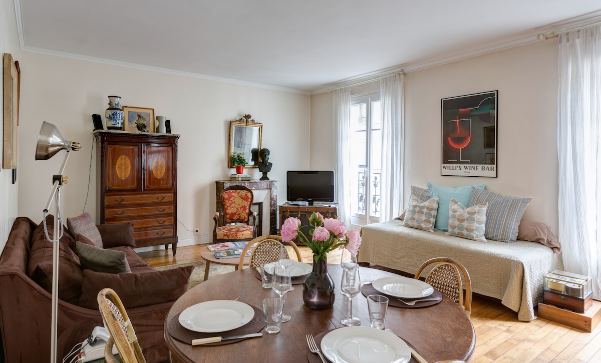 Quiet and located just steps from the Eiffel Tower, the Seine River, and the Quai Branly Museum in a safe and lively neighborhood with museums, restaurants, and theaters. 80 sq m apartment with a bright living room, large bedroom, fully equipped kitchen. High ceilings. Living room : a daybed and a sofa bed provide additional sleeping options. Both are very comfortable. Carefully decorated in a contemporary style, creating an elegant and calming atmosphere. Professional cleaning guaranteed.
