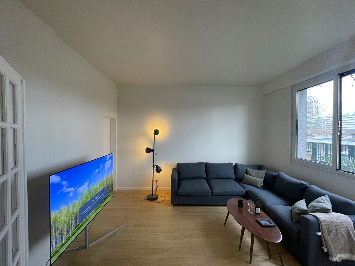 Relax in this unique and peaceful place. Its zen atmosphere and its amazing Seine view are perfect to rest after an intense tourist and hopping day in Paris. Ideally located a few minutes walk from the Eiffel Tower, the statue of Liberty, the Beaugrenelle shopping and cinemas center, the Maison de Radio France concert hall and the very lively Rue de Passy. Less than 10 minutes drive from the Champs Elysées and the Louvre Museum.