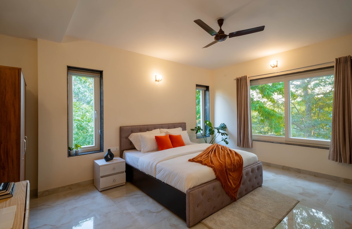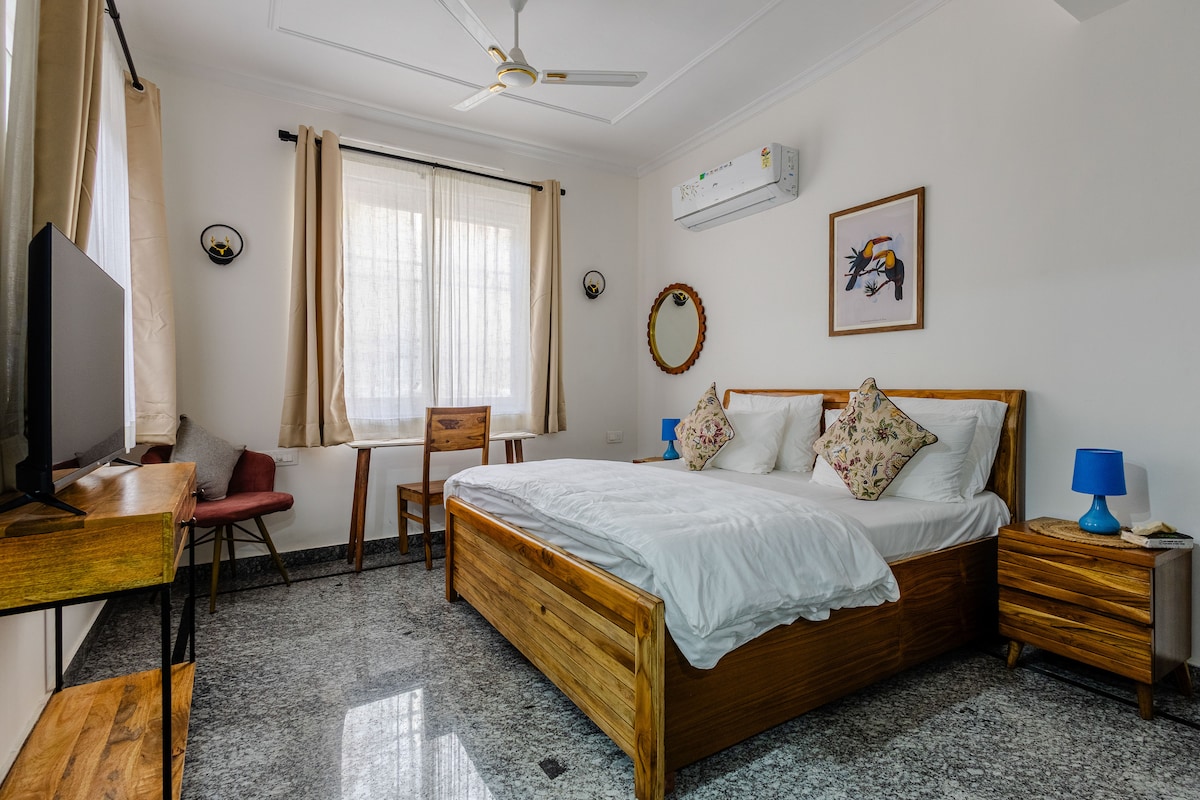 Stay at our spacious 2BR Park-View Retreat, 8.5 km from airports & 15 min ride to the metro. Enjoy airy balconies, park views, mahogany/wooden beds, a fully-equipped kitchen, high-speed Wi-Fi, Smart TV, complimentary toiletries, & local recommendations. Relish home-cooked meals, explore nearby market & malls, and unwind with serene jogging paths. Experience top-notch hospitality with flexible check-in/out, laundry services & optional airport transfers. Book now for a memorable Delhi stay!
