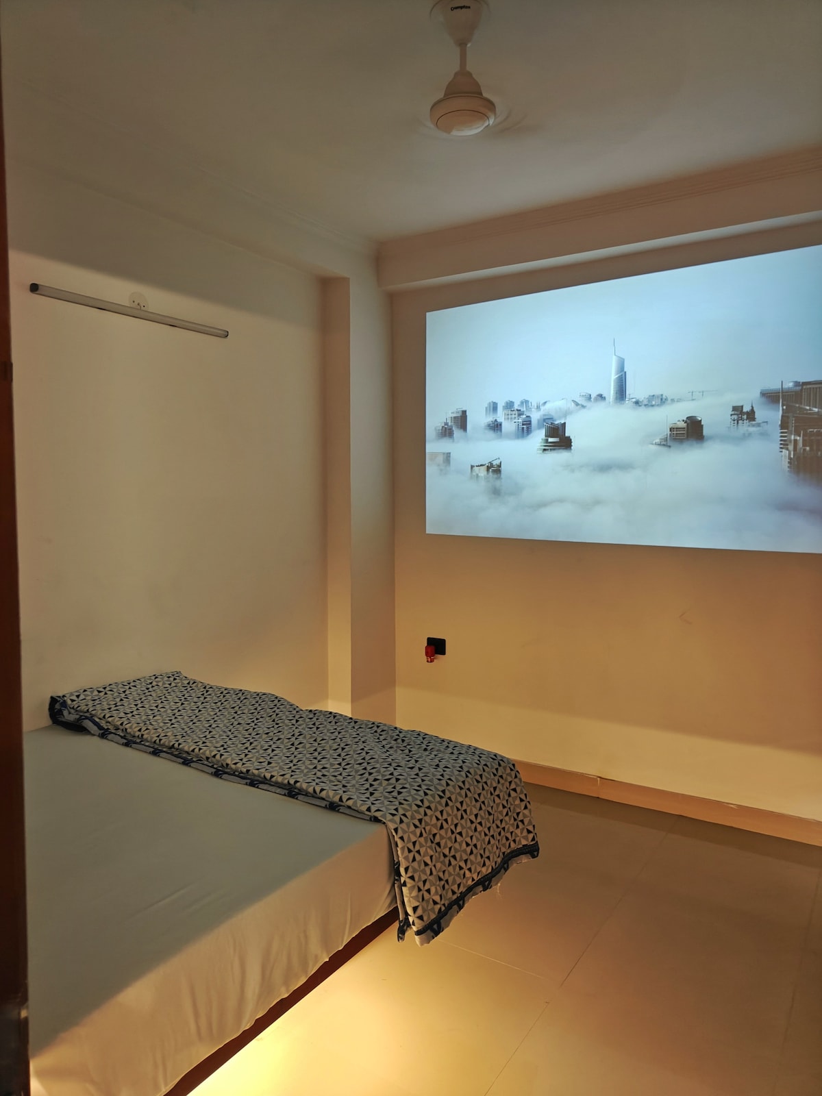 ➽ Spacious 1BHK apartment with an attached patio, fully air-conditioned. All rooms have 1.5-ton ACs. ➽ Sun-facing property in a high-income neighborhood, three-side open, park-facing, and well-ventilated with ample natural light and fresh air. ➽ Movie nights with a projector, 20W soundbar and Amazon Fire Stick with OTT apps. ➽ Fully equipped kitchen with essentials for convenient cooking. ➽ Relax on the stunning private terrace patio with ambient lights