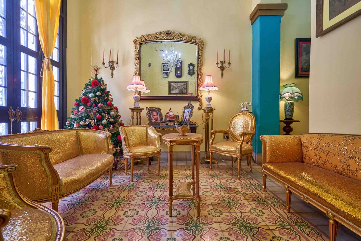 2 Min Walk-Malecon 10 Min Walk-Prado street 8 MinDrive-Old Havana 12 Min Walk-Capitolio/Habana Vieja Make this stunning Cuban Colonial house your home away from home. Built in 1908 and located in Centro Havana, Aimara’s Hotel Boutique is the perfect base for exploring the historical city. Boasting modern amenities, you’ll love waking up to beautiful Art Nouveau decor-especially paired with a freshly prepared breakfast for $8/PP at your request! We only accept $ or € Experience Havana With Us!