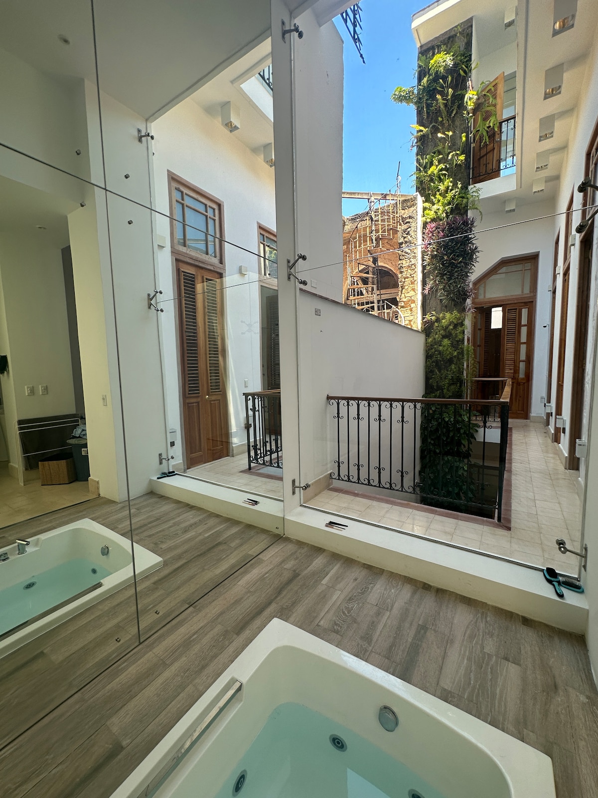 Welcome to to the Travelers Bedroom in Casa Pompei ! This stylish boutique hotel is located in the center of Havana. You're within walking distance of every important landmark in the city! It is only 20 minutes from the airport and we arrange classic car pick-ups for our guests! Every room has private terraces, a rooftop with 360 views, on-site laundry service, and a kitchen & dining room to enjoy your coffee in the middle of Havana! We look forward to welcoming your stay here!