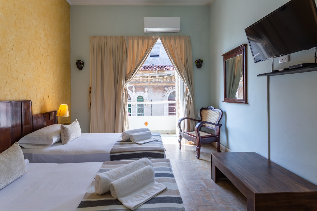 Charming apartment in “La Loma del Ángel”, steps from El prado, Plaza de la Catedral and the Malecón. Surrounded by museums, cafés,restaurants, colonial architecture, and bars with live music. Perfect to enjoy the real Havana. Includes A/C bedroom, living room, private bathroom, and equipped kitchenette. Free Wi-Fi available U.S. guests can book under the “Support for the Cuban People” category. Walk Old Havana and feel at home. Free tour downstairs.