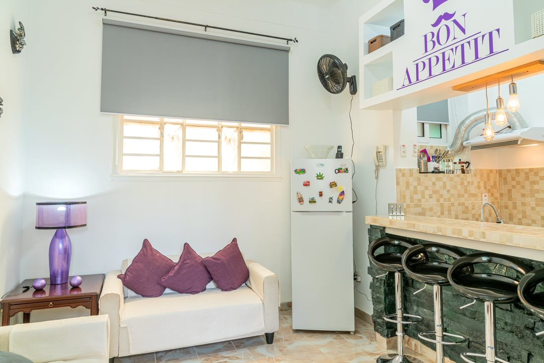 Peaceful 2-bedroom, 2-bath, 100 m² penthouse in Miramar, 20 minutes from the city centre. - Free WIFI - Solar-Battery Power Backup System ensures you'll never lose electricity during power outages. - Recently remodelled, equipped kitchen and city-view balcony. - The apartment is on the 3rd floor (last) of a family building. - The building doesn't have an elevator, but there are only 54 steps up to the apt. Ask anything— we reply within the hour. Reserve your Havana stay now!