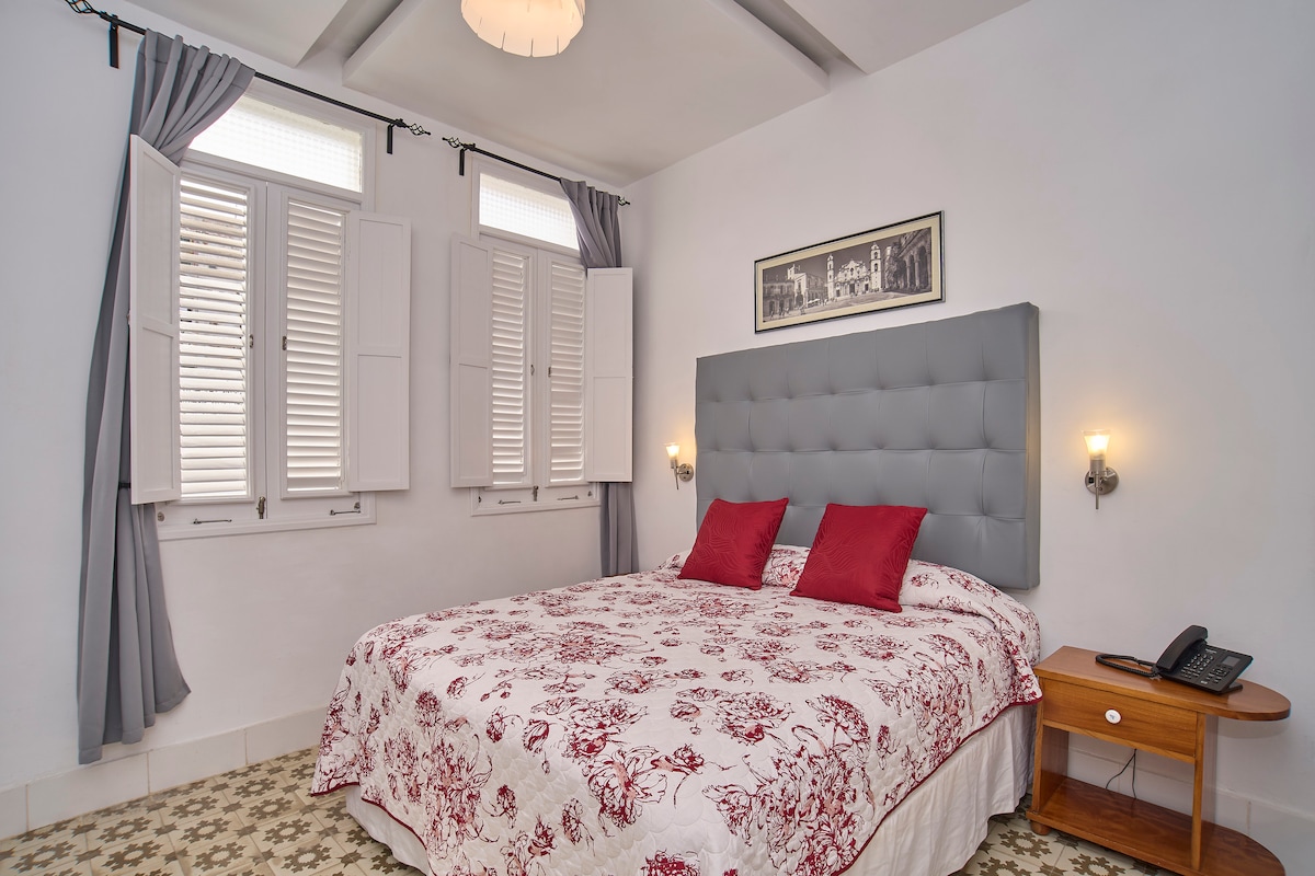Privileged location, placed in the most beautiful, restored and safe area of the Historic Center, just in front of the emblematic "PLAZA VIEJA" and surrounded by cobblestone streets (no cars), bars, restaurants, museums and must-see sites. The apartment is designed for your comfort and it's located on the 1st floor of a colonial building built in 1890. Delicious breakfast at no additional cost, you'll receive a local smartphone + WIFI and money exchange service. Optional airport pick-up.