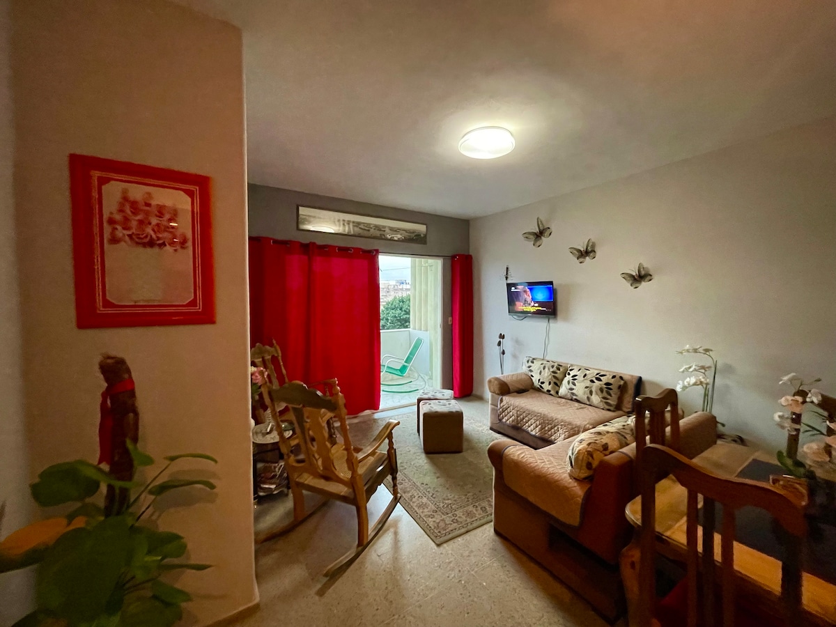Comfortable private apartment with two double rooms, the whole place is air conditioned. Provided kitchen.Outdoor view, half balcony. It is located on Vedado residential area, 400 meters from Hotels, famous Malecón of Havana, wifi areas, restaurants , bars and museums. Only 10 minutes to Old Havana and 45 minutes Santa Maria Beach. I recommend the accommodation for couples, alone people, business travelers and family with children. Our Apartment will be your Home in Havana.