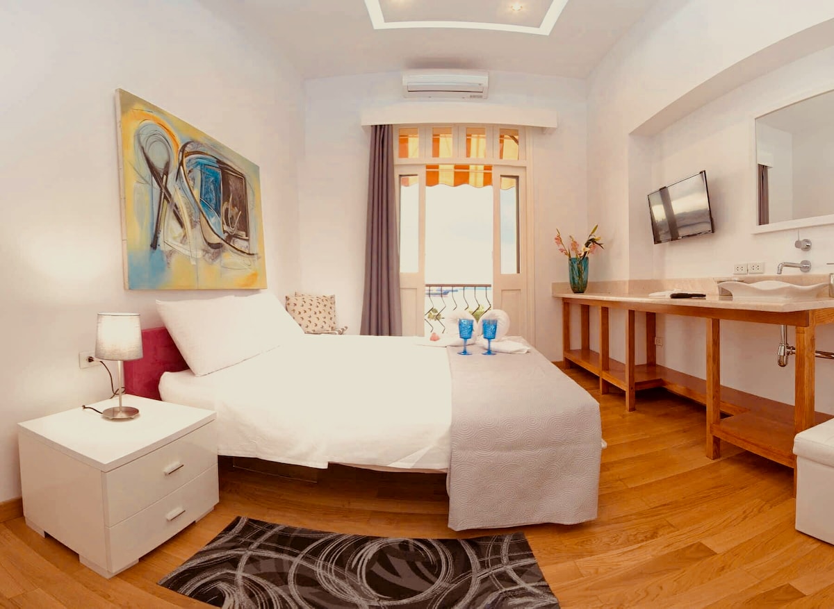 Wake up to breathtaking views of Havana Bay from your private terrace. Surrounded by lush greenery, this apartment features a tropical garden with exotic plants and a reflecting pool, a cozy bedroom with private bathroom, a pantry with fridge, included tropical breakfast, and paid WiFi access. Just 5 minutes by ferry from the Historic Center. A perfect place to relax and enjoy the best of authentic Havana.
