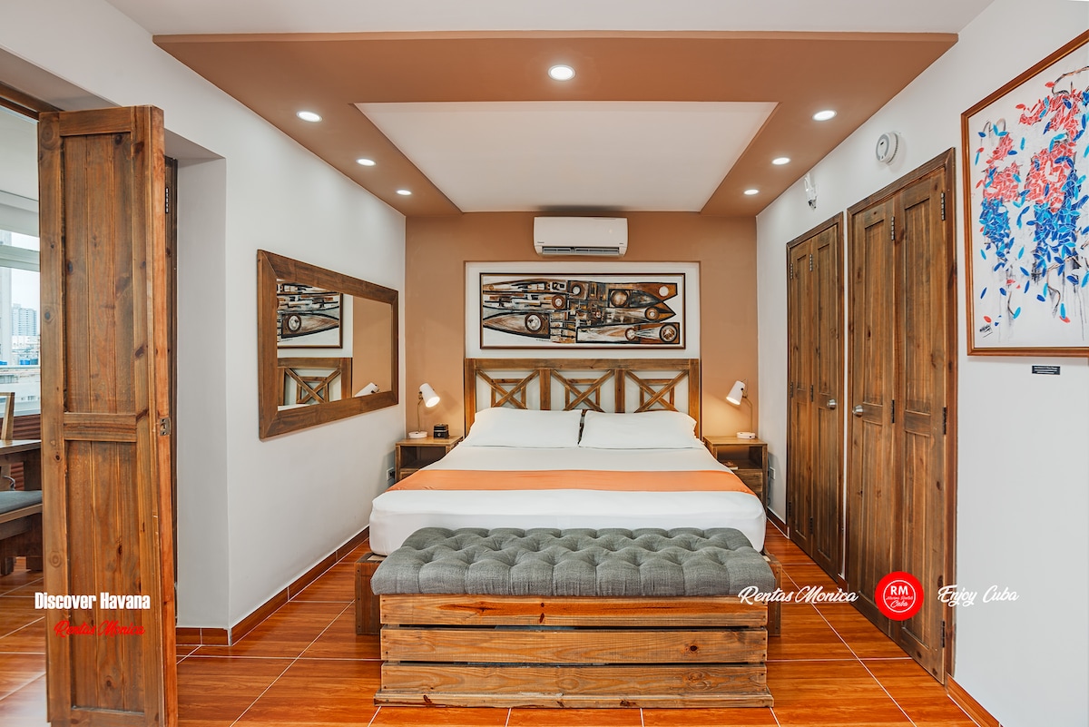 “W&B CHACON apartment with Modernity and Style in the Heart of Old Havana, with Panoramic Balcony. Personalized attention, Wi-Fi, king size bed and air conditioning throughout the house, ideal for resting. 30 minutes from the airport. Surrounded by the best bars, restaurants, museums and places of interest in a city of more than 500 years. We have the Malecón and the Bay of Havana just 300 m away. We can coordinate all transfers for you. Ideal for couples and business travelers. WiFi FREE.