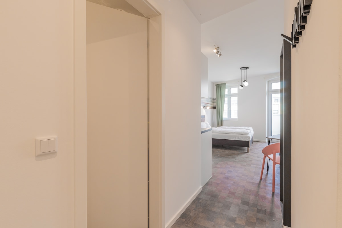 Aparthotel with Reception. With our Loft Studios in Nena Apartments Metropolpark Berlin, you've found a great place to stay in Berlin. Here, historical elements are combined with urban design in the listed building, in a prime location yet quiet in the trendy Mitte district. Loft Studio with a combined Living- Sleeping Area. Parties/events are not allowed! *example Pictures*