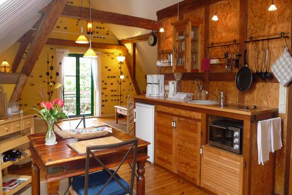 Mitten im Wald, auf einer Lichtung, 3 km vom schönen Ort Gartow entfernt, liegt unser besonderer Rückzugsort. Wer Ruhe und Stille in der Natur sucht und Wert auf Einfaches und Gutes legt, ist hier richtig. Das alte Fachwerkgebäude, ein ehemaliger Stall, wurde hochwertig und nachhaltig mit Naturmaterialien saniert. Lehmputz an den Wänden und der Holzofen garantieren ein hervorragendes Raumklima, der Gang in die holzbefeuerte Sauna verspricht absolute Erholung!