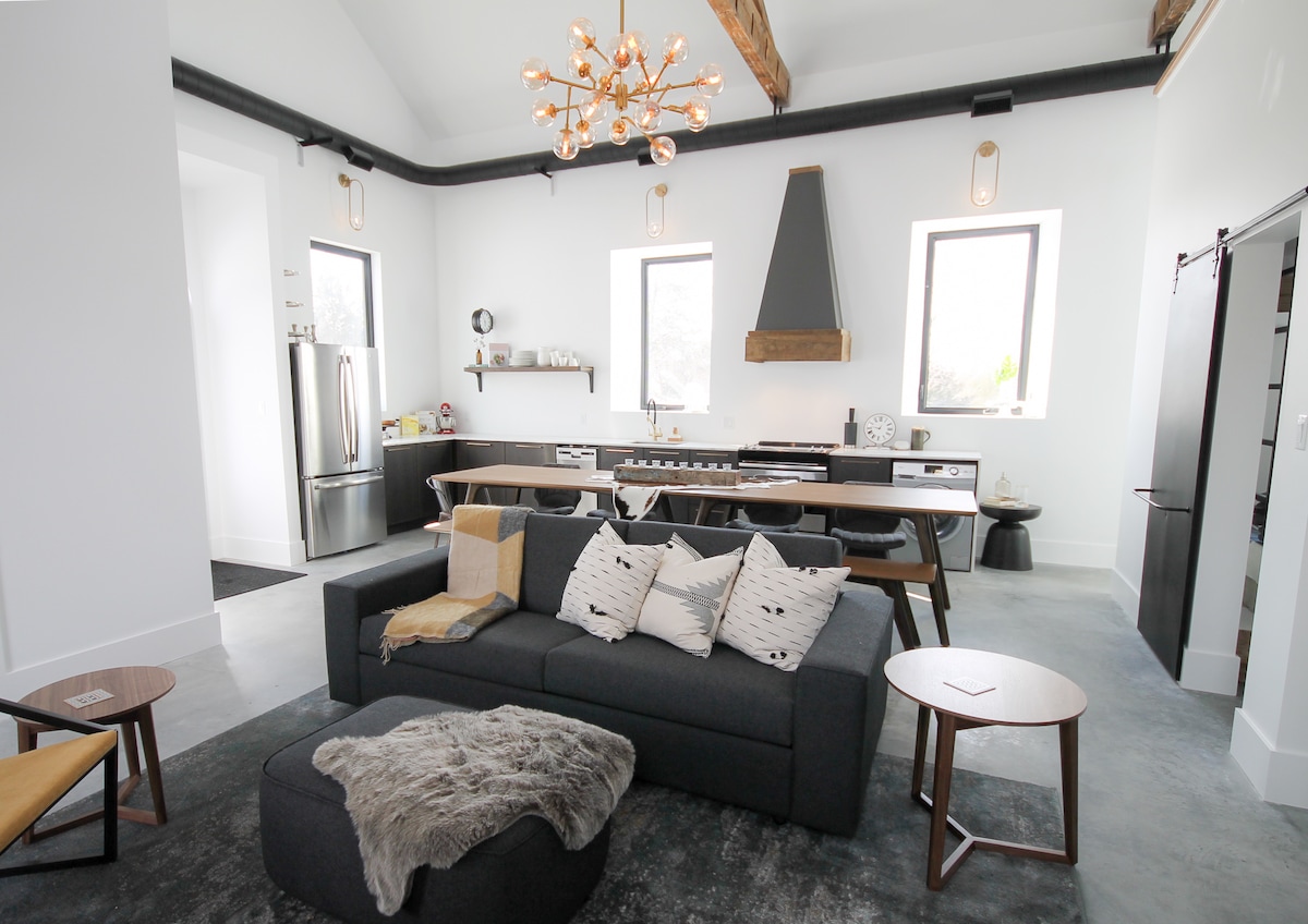 The Eh Frame is 3-story Scandinavian inspired luxury cabin with 2 completely separate units. Your group will have the complete front side of the house (everything shown in the pictures), patio, private spa, fire pit etc. The back side of the house is a separate rental unit. The units are separated by a firewall down the middle of the house to ensure maximum comfort and privacy. Located just 2 minutes from Whispering Springs Glamping Resort and 10 minutes from Ste. Anne’s Spa.