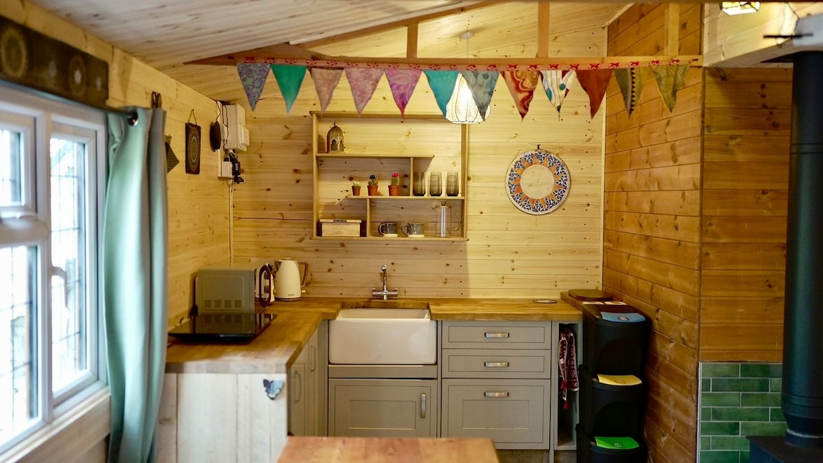 A cosy and relaxing space with touches of rustic charm. Located in the heart of Snowdonia, surrounded by the mountains. An open plan living space with all the essentials. Cooking area ,with mini fridge & camping stove. Parking Private parking available, the track up to the cabin is steep. There is a parking space available at the bottom of the track (50 meters away from the cabin) or you are welcome to drive up, as there is space to park and turn around at the top of the track.