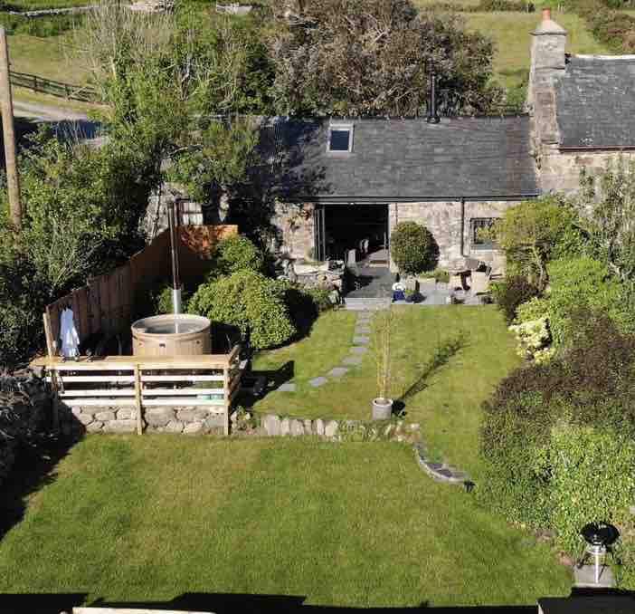 You're assured a warm welcome to this beautifully restored small barn, now a cosy cottage with exclusive use of all year round hot tub! Stunning location bordering Snowdonia (10 mins walk to Park). On clear days Snowdon, Yr Wyddfa, herself is in full view. Free Electric car charge. Close to castles, Llyn Peninsula, much beautiful coastline, stone's throw from Anglesey & more! Suitable for couples/one individual. Come, pamper yourself on a restorative break, explore a glorious area, North Wales!