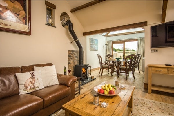 Upper Calf field Barn is perfect for a romantic getaway for one or two couples - or as a holiday venue for small families. This contemporary two double bedroom, two bathroom barn conversion is light, airy and spacious with vaulted ceiling and beams and beautiful furnishings which give it the "wow" factor. In a lovely rural setting it is only a ten minute drive from the numerous shops and restaurants of Haverfordwest and fifteen minutes from a selection of wide sandy beaches.