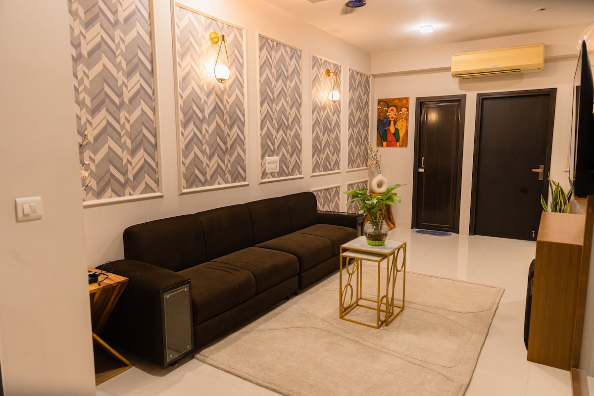 Message me to “UNLOCK A LITTLE SURPRISE”for your stay 😉 Welcome to Emerald – Your Luxurious 1BHK Retreat. Step into Emerald, a newly constructed, modern 1BHK flat designed for comfort, and convenience. Perfect for solo travelers, couples, or business guests, this elegant space offers a luxurious stay with all the essentials you need to feel right at home. Enjoy a fully furnished apartment featuring a spacious bedroom, sleek kitchen, cozy living area, and a pristine bathroom.
