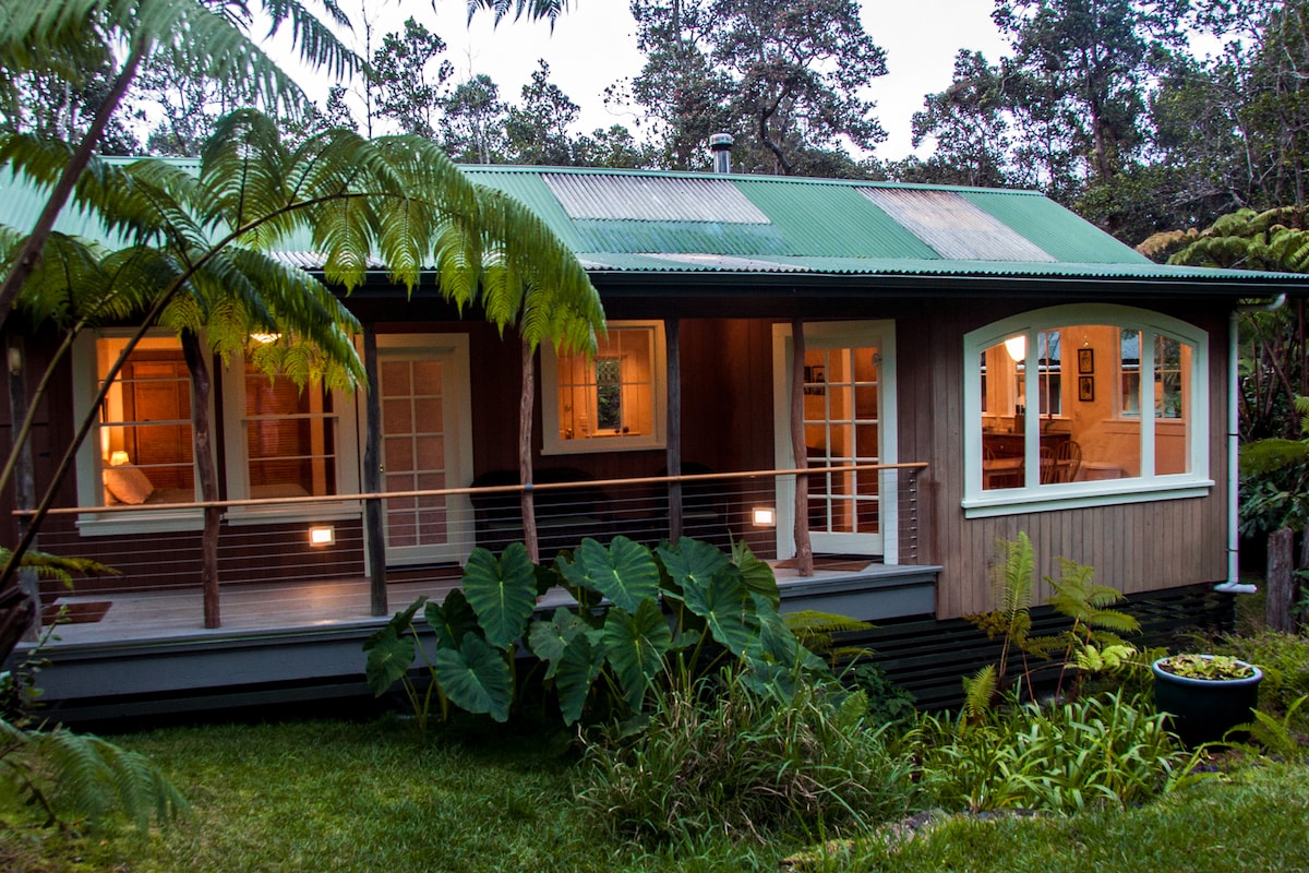 Luxury-Artist Built Rainforest Retreat Near Volcanoes National Park Featured on Discovery Channel (Building off the Grid), this artist-designed rainforest retreat near Hawaiʻi Volcanoes National Park blends sustainable living with island-style luxury — a peaceful escape surrounded by native rainforest. Set on 3 private acres on the slopes of Kīlauea, this handcrafted 2-bedroom home sleeps 6. With modern comforts & curated artistic design, it offers a truly one-of-a-kind stay on the Big Island.