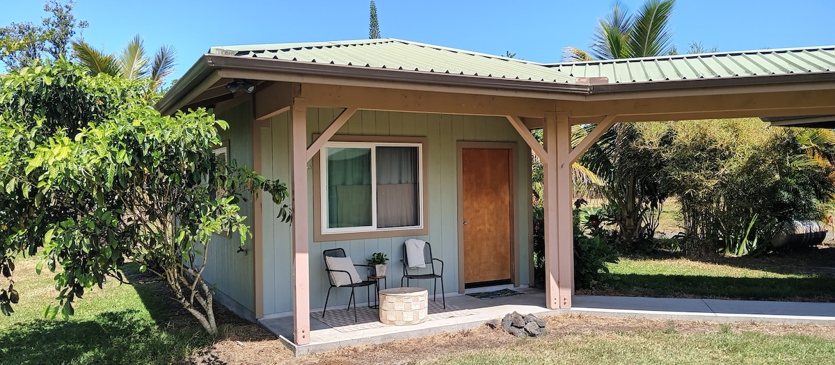 Introducing a private oasis of comfort and charm, our newly renovated tiny house. This simple retreat is a testament to minimalist luxury and offers a convenient escape near Kona International Airport and downtown Kailua Kona. The exterior of the tiny house is a harmonious blend of rustic charm and simple design, featuring a quaint porch, perfect for sipping your morning coffee or working on the computer while gazing at the pacific ocean.