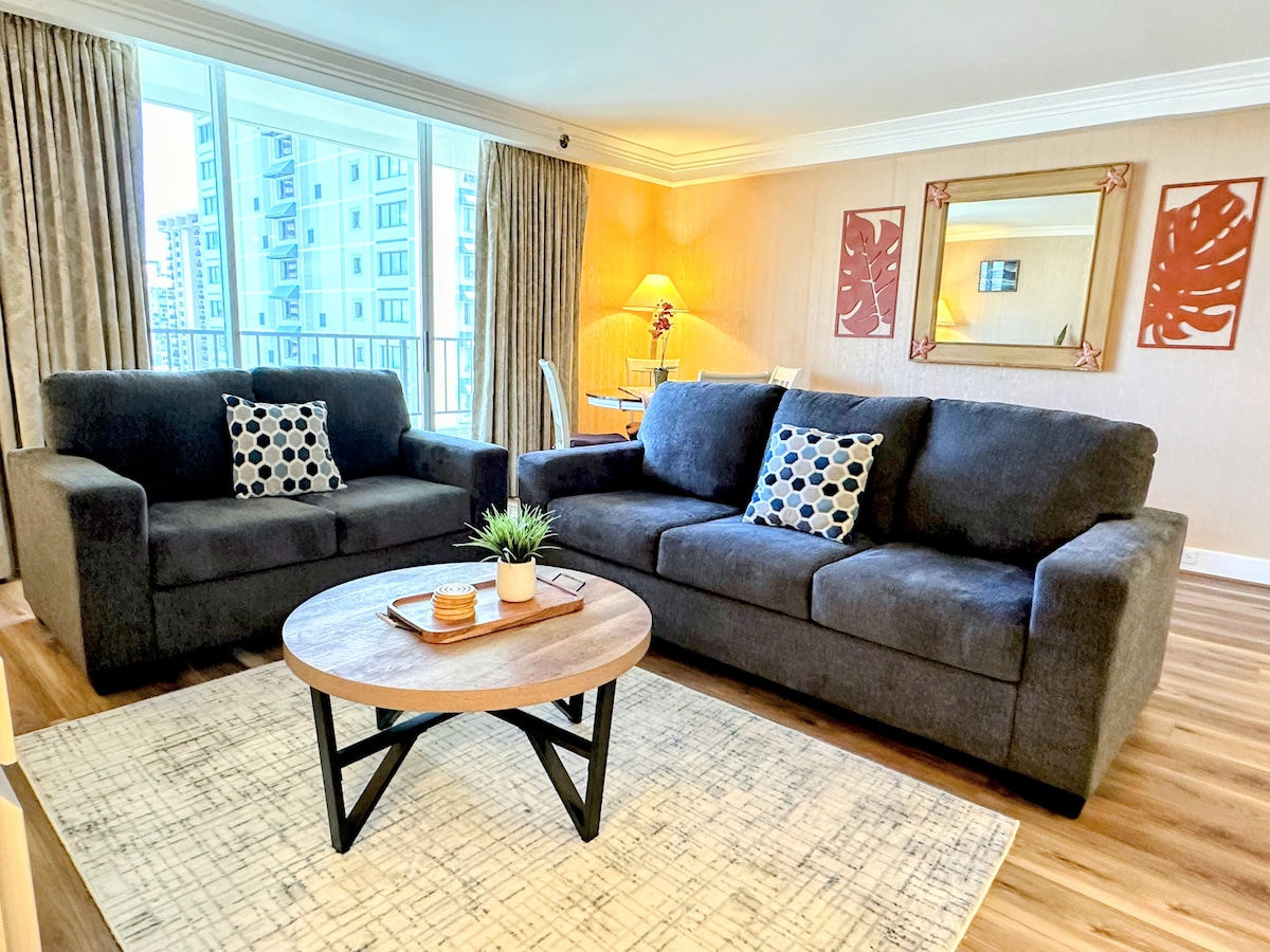 ALOHA! (Fully Renovated in June of 2025 / 1 free parking. There is a top-quality water purifier inside the unit, so there is no need to buy bottled water. This location is on the " quieter" side of Waikiki. This is a newly remodeled unit with all brand furniture. located on the 12th floor..500 SQ FT, 120 SQ FT( large balcony) has City view. easy self-check-in. spacious, bigger than most Open 1 bedroom. 1 Queen Size Bed,1 full bed and 1 Queen sofa bed and can accommodate up to 5 people.