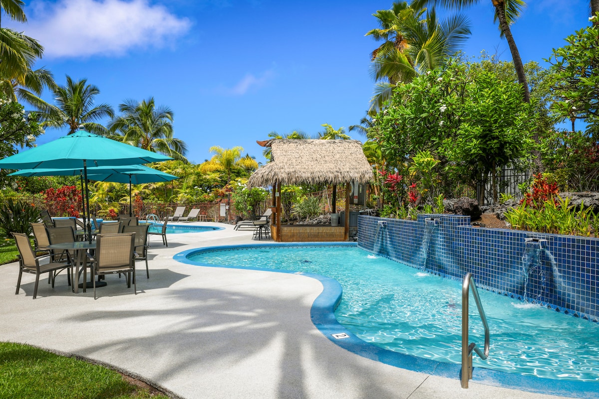 Best unit at Kailua-Kona’s popular Sea Village and one of the only with A/C! Captivating ocean views, breezes, tropical sights and sounds greet you in this easily accessible ground floor unit. Start your day on the private lanai watching the spinner dolphins and end it with a glass of wine watching sunset over the ocean. This fully updated, turn-key condo boasts open concept living and is 5 minutes to downtown. An ideal base for an individual, couple or small families to explore the Big Island!