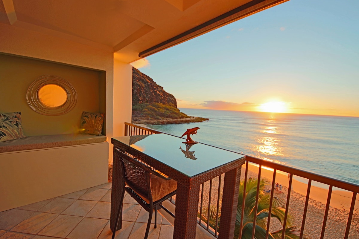 Mesmerizing sunset views from this sandy beach front condo. Nothing separates you from sparkling turquoise waters but footprints in the sand. Balcony is ideal height for turtle watching. From Nov- April you may spot a whale. This vibrant land is full of surprises. Even dolphins spin by now and then. Escape the crowds of Waikiki to experience a real Hawaiian lifestyle. Snorkel, boogie board or surf right out your door. Awakening to the rhythm of the ocean can change your life forever.