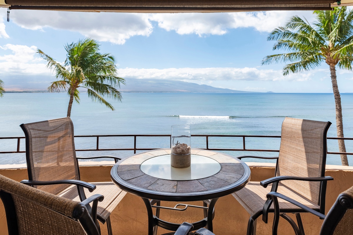 Locally Owned and Operated 1BD/2BA condo with the best direct beachfront location, panoramic Ocean views, sunsets, and seasonal whale watching. The owner’s spared no expense in renovating this unit making it hand’s down one of the nicest units in all of the Mahana. Wake up to the cool tropical breeze and sounds of the shoreline just 50 feet away. Floor to ceiling windows in the living area and bedroom bring the stunning views and warm Maui sun inside while central AC keeps you cool inside.