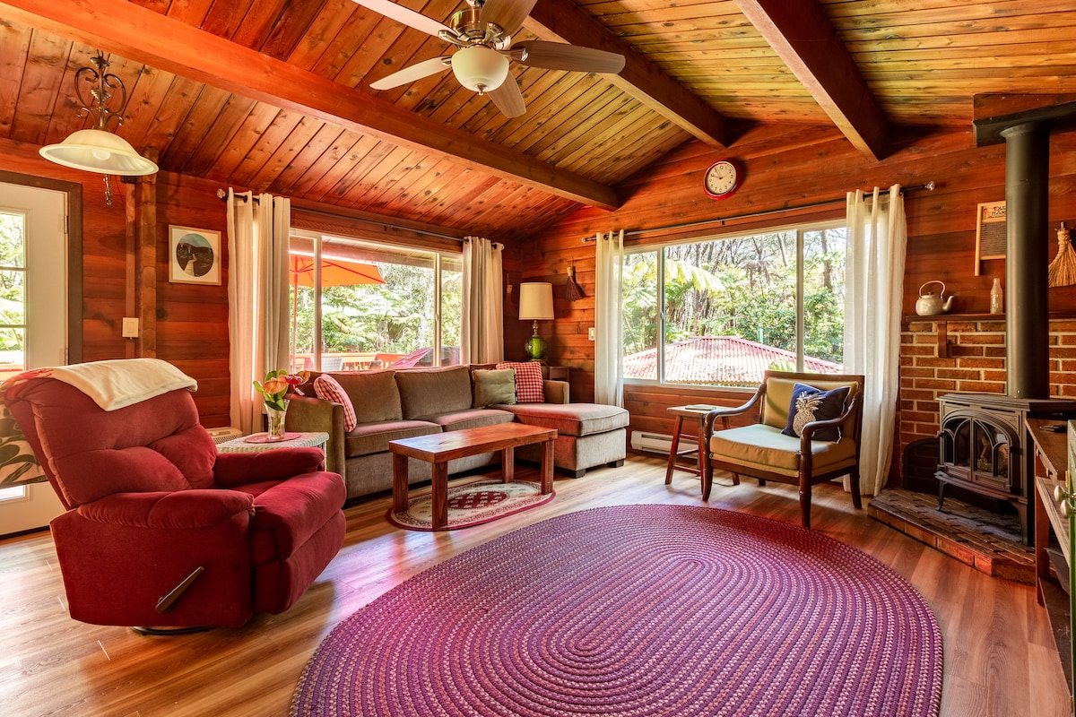YOUR PRIVATE COTTAGE AMONG THE TREE FERNS Step into a romantic rainforest sanctuary just minutes from Hawaiʻi Volcanoes National Park. Nestled among native ʻōhiʻa and hapuʻu trees, this spacious 850 sq. ft. one-bedroom cottage is perfect for nature lovers, couples, and solo travelers seeking peace and inspiration.