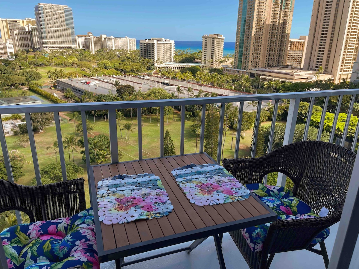 Enjoy stunning ocean and Diamond Head views from your private lanai in the heart of Waikiki. This modern studio is just a short walk to Waikiki Beach, Fort DeRussy Park, world-class Ala Moana shopping center and endless dining. Perfect for couples, friends, business travelers, or small families. Wake up to sunshine, sip coffee on the balcony, and relax in a clean and comfortable space with everything you need for an stress-free stay.