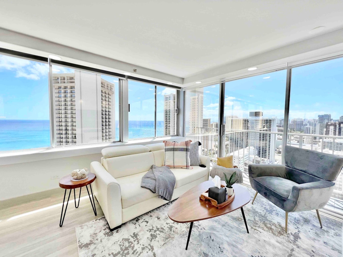 32楼顶层公寓。步行3分钟即可抵达威基基海滩