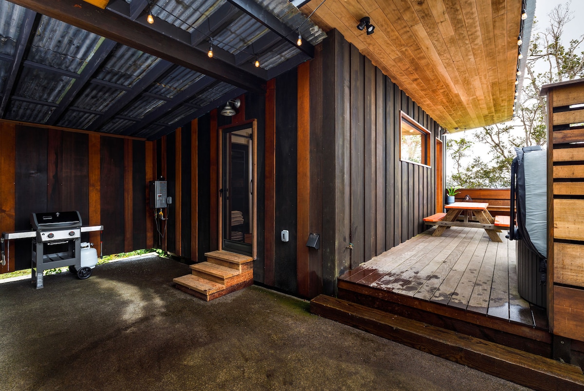 Tucked away in a peaceful native Hawaiian forest, this modern hideaway offers the perfect romantic escape just 10 miles from Kona’s beaches, airport, and town. Thoughtfully designed for couples, honeymooners, and those craving serenity, this stand-alone retreat blends minimalist style with beauty. Unwind in the private hot tub surrounded by nature, watch sunsets from the lanai, or grill under the stars. Inside, enjoy 384 sq. ft. of creative space that captures luxury, nature and seclusion.