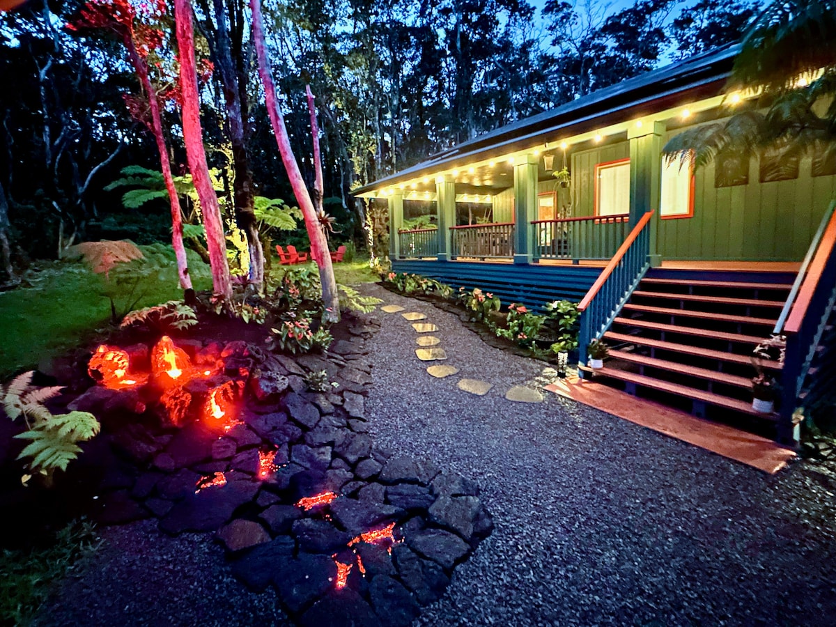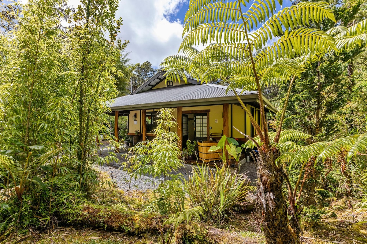 YOUR PRIVATE COTTAGE AMONG THE TREE FERNS Step into a romantic rainforest sanctuary just minutes from Hawaiʻi Volcanoes National Park. Nestled among native ʻōhiʻa and hapuʻu trees, this spacious 850 sq. ft. one-bedroom cottage is perfect for nature lovers, couples, and solo travelers seeking peace and inspiration.