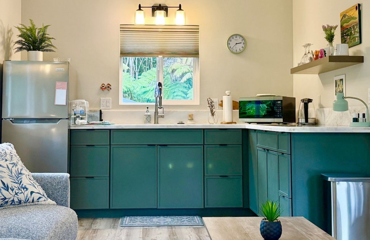 Located on the eastern side of the Big Island, this modern 1-bathroom Keaau vacation rental puts right in the heart of the area's top outdoor destinations. Explore scenic hikes in Hawai’i Volcanoes National Park, enjoy the tropical landscape in the mists of Akaka Falls, then grab a bite in downtown Hilo. The 'Ohana Suite' is the perfect place to kick back after a day of adventure by basking in the natural sunlight. Hawaii’s world-renowned beaches and sea cliffs are waiting to be admired!