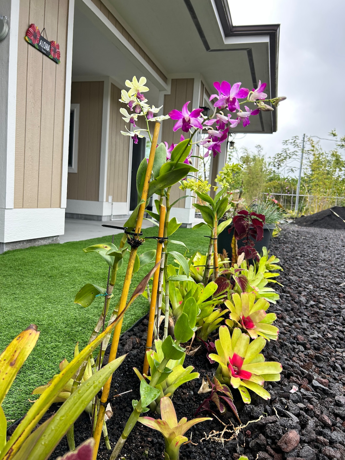 The studio is located in lower Puna, Leilani Estates and an easy 12 minute stroll for a view of Ahuʻailāʻau, the official title for Fissure 8, which appeared in the Puna District of Hawai'i Island during the 2018 Kīlauea eruption. 10 minute drive to historic Pāhoa town , 25 minute drive to the scenic Red Road and 35 minutes to Hilo. Studio is attached to the main part of the home with a parking space, private entryway and lanai. Kitchenette has all you need to prepare a meal. Grill on request.