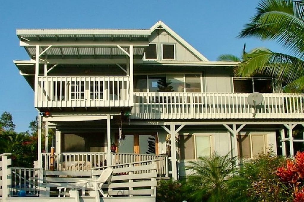 Mahalo Kai is just a block from the black sand Kehena Beach and 5 miles from a brand new black sand beach. The natural surroundings feature coconut trees, coffee, tropical fruit, and exotic flowers. Activities include bike trails and a night market.