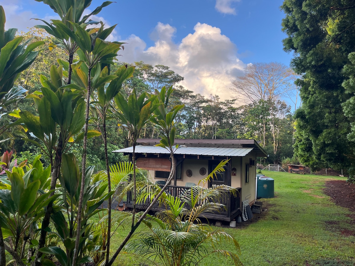Clean and airy studio located for easy access to all of east Hawaii and the rest of the island. The studio is a separate guest unit with a back porch and lots of privacy. No steps to climb, covered parking place, washer/dryer, and 1 acre to enjoy. Full bathroom and full kitchen. A great place to come home to at the end of the day on the island. Also a perfect place to spend a work-vacation. Check out our 250+ amazing guest reviews! Many guests say they wish they had planned to stay longer...