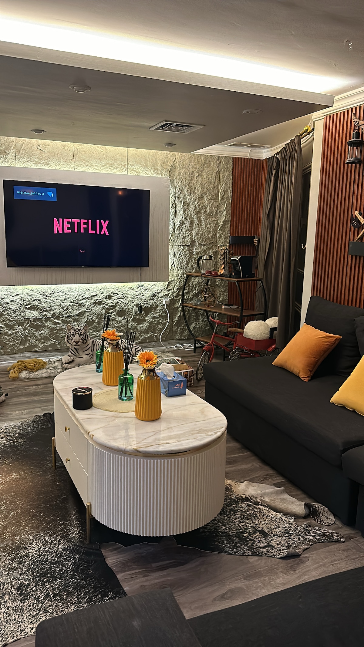 💎Self Check in fully furnished apartment in Salmiya 💎5G ultra speed WiFi 💎Philips Hue color light with mobile app 💎Self Check-In with Electronic lock 💎55’Smart TV / Bluetooth Sound bar 💎50”TV in Bedroom 💎Netflix,OSN, Prime, ZeeTV,SDisney 💎Toiletries & bath towels provided 💎Cable free mobile chargers 💎Dr. Vranjes luxury oil diffuser