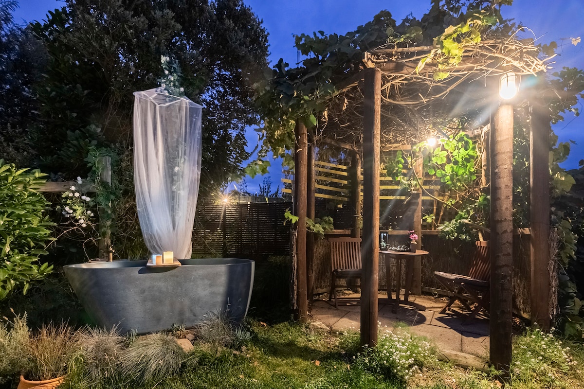 Fabulous Garden & Outdoor bath. 15 minute walk to town & Lake. 5 Star Reviews from over 600 guests Ideal for Couples • Covered courtyard, large outdoor chandelier & dining area • Outdoor cast iron bath . Enchanting shared garden, veggies, fluffy chickens, fruit trees . Well equipped kitchen and washing machine • Kayak available • Free unlimited Wifi . Covered off street parking . Easy access to Taupō's many attractions . Muesli and milk provided for breakfast