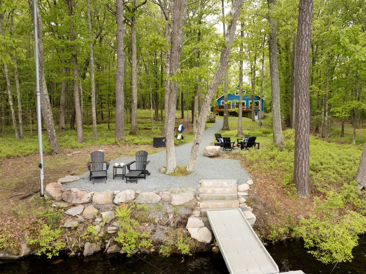 Intimate Lakefront country cottage on beautiful House Pond. Just 3 minutes from the Lake Wallenpaupack boat launch and 5 minutes from shopping, restaurants, bars, boat tours, fantastic hiking trails, and more. At this quiet, newly renovated (2022) retreat, you can experience great fishing, incredible sunrises and sunsets, bald eagles, blue herons, deer, various birds, and other wildlife. Relax and dine on the deck or lakeside flagstone patio while enjoying crackling embers in the fire pit.